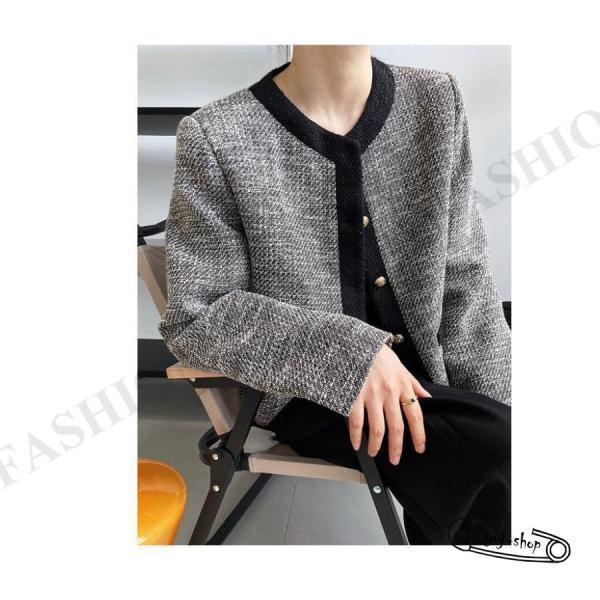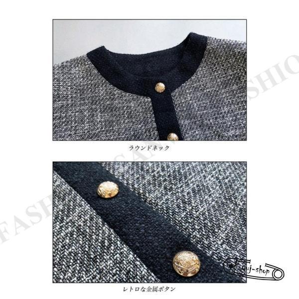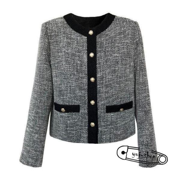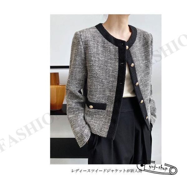 ツイードジャケット レディース ジャケット 秋 春 ノーカラージャケット キレイめ ツイード アウター ショート 通勤 レトロ フレンチ風 金属ボタン