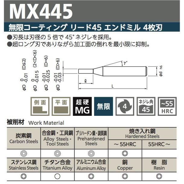 【送料無料】 NS 日進工具 MX445-8 無限コーティング リード45 エンドミル 4枚刃 08-00095-00800