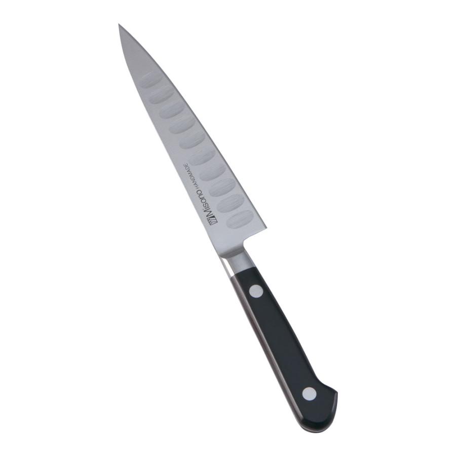 品質、切れ味、フォルム。三位一体のミソノステンレスモリブデン鋼。モリブデンとバナジウムの入ったハイカーボンの高級ステンレス・モリブデン鋼を使用し、ハイレベルの技術を駆使した理想の洋庖丁です。刀身と一体のツバが衛生的。切れの冴えと耐久性を両立させた最高の出来ばえが、またひとつ秀作を生みました。※包丁の表示サイズは、すべて刃渡り寸法となっております。※Q&A<BR>●メーカー品番:572<BR>●サイズ(cm):13<BR>●全長(mm):230<BR>●質量(g):70<BR>●背厚(mm):1.7"}
