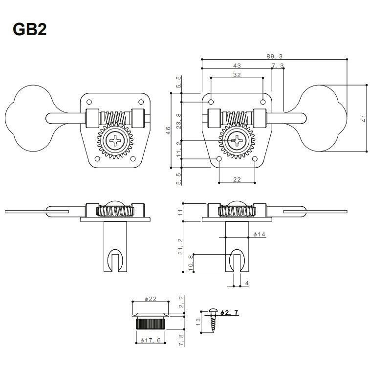 【商品型番】GOTOH GB2-6【ペグ配置】L3+R3/L4+R2(6pcs/set)【カラー】ニッケル/ゴールド/ブラッククローム/コスモブラック【ギア比】1 : 26【Weight 】110.3 g/pc【付属品】ブッシュ、レンチ、木ネジ※表示されている商品画像のカラーは一例です。※閲覧環境によって実際の色と違って見える場合がございます。※受注生産のため納期は10-15営業日以降となります。"}