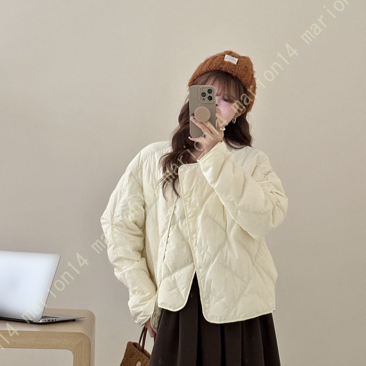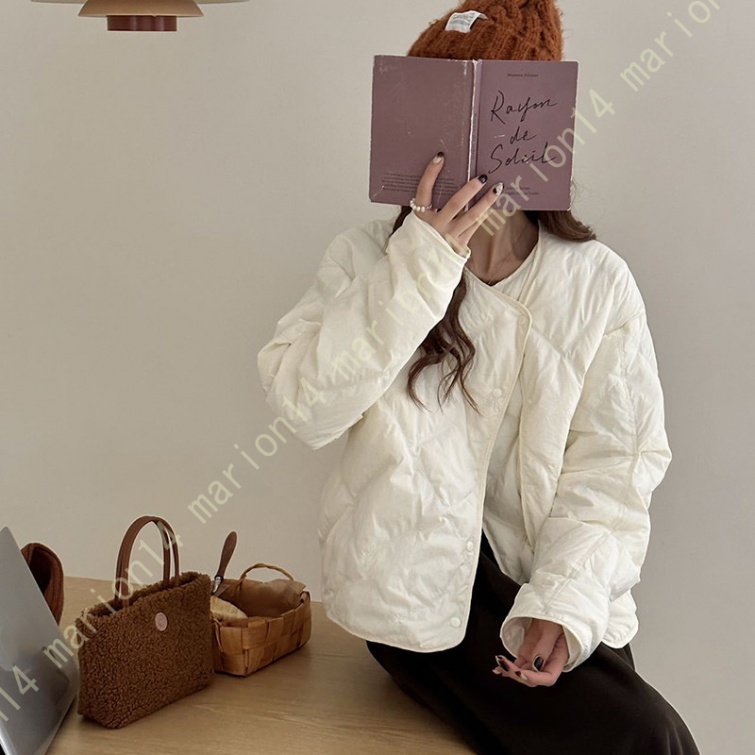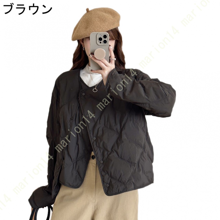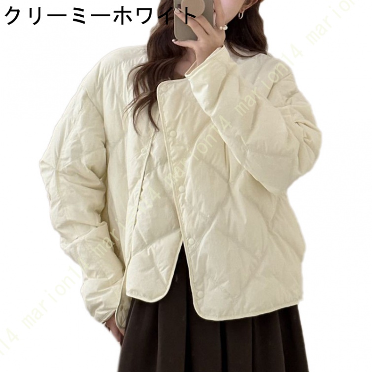 ノーカラー ショート 丈 ダウンコート オフィス カジュアル ビジネス 母 ママ 秋 冬 ダウンジャケット おしゃれ 防寒対策 大人可愛い 大きいサイズ防風 軽量