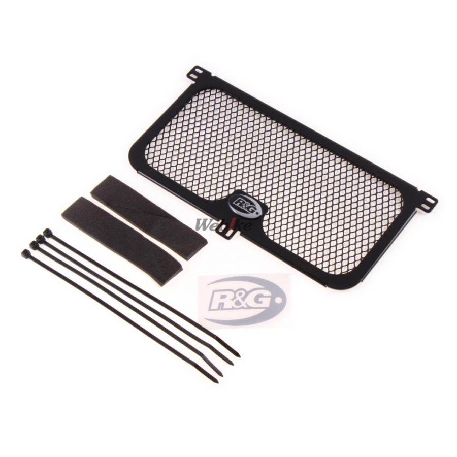 R&G Oil Cooler Guards are available in a Black,Titanium,Light Blue,Red or Dark Blue powder coat finishes.They are made from pressed aluminium and feature a neat,seamless frame.They improve the looks of your bike and help to protect your expensive and vulnerable oil cooler from flying debris.