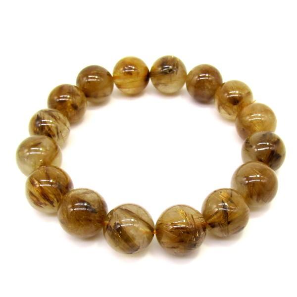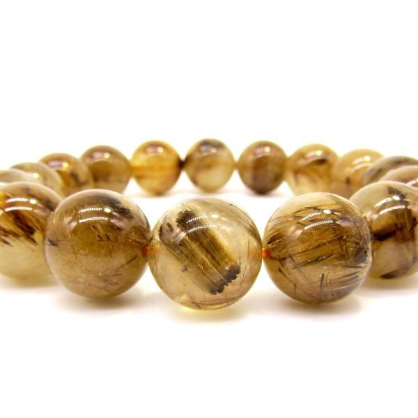 タイガールチル ブレスレット 14.5mm素材 ルチルクォーツサイズ珠径 14.5mm内径 19cm透明水晶や茶水晶などが、地中で成長していく過程で、さまざまな鉱物が入り込み、針状の結晶が水晶の中に形成 されたものを「針水晶(ルチル)」 と呼びます。※ 写真は商品現物を撮影しておりできるだけ現状に近い撮影を心掛けておりますが、ブラウザ等個人差で感じ方が違う場合があります。※ 天然石ですので多少の傷、曇り、クラックは御座います。"}