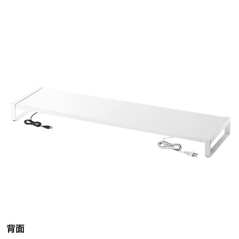 訳あり新品 モニター台 机上ラック 卓上 幅100cm 奥行25cm スチール 白 USB 電源 コンセント キーボード MR-LC206WN サンワサプライ 箱に傷・汚れあり