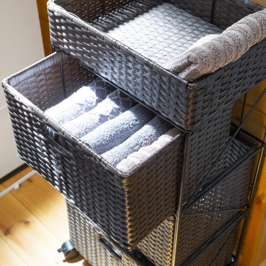 人工ラタン籐製チェスト キャスター付き お風呂場やキッチンでも活躍