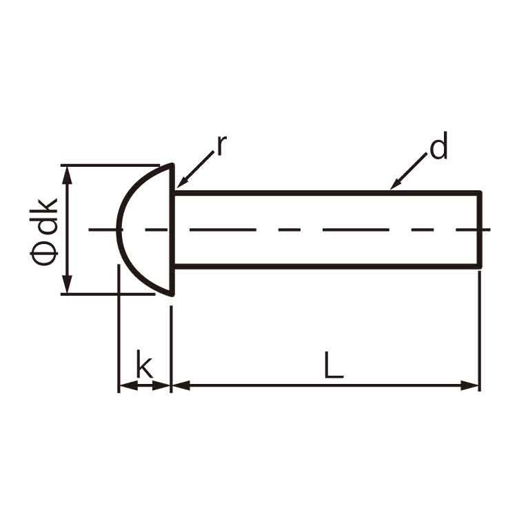 丸リベット【500個】CU マルリベット 5 X 15 銅(CU)/生地(または標準)