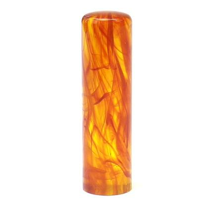 ー商品仕様ー・印面寸法 直径 16.5mm・印章サイズ 60×16.5mm・最大文字数 タテ・ヨコともに2行まで。1行に4文字まで入ります。・書体 楷書体/印相体/てん書体/古印体/毛筆体・材質 琥珀樹脂数千万年の年月をかけて作られた「太陽の石」「人魚の涙」「幸せをもたらす石」などと呼ばれる半透明で黄褐色の天然樹脂の化石に、高硬度の人工樹脂を合成加工し耐久性を高めたたものが琥珀樹脂です。美しい色と個性ある模様が「どこにもない自分だけのもの」ということで象牙とならぶ高級印鑑として扱われています。・用途 実印・銀行印にオススメ。16.5mmの印鑑は、男性も女性も実印としてお作りするのにオススメです。"} ■ 安心の高品質とスピーディな製造・発送パプリショッピング店では、最新彫刻機やレーザ加工機などの最新設備を備えた大手文具メーカーPLUS社と大手スタンプメーカーシヤチハタ社の2社の印鑑スタンプ工場と提携し、印面の彫刻・製造から梱包出荷まで一貫生産を行うことで高品質な印鑑スタンプをお届けしています。また受注生産体制を整備することで在庫切れによるお届け遅延を低減し、最短ご注文当日に製造・出荷する「当日出荷(※)」を実現しています。※土・日・祝日をのぞく午後1時までのご注文が対象となります。またシヤチハタ別注品については、最短で翌々日出荷となります。
