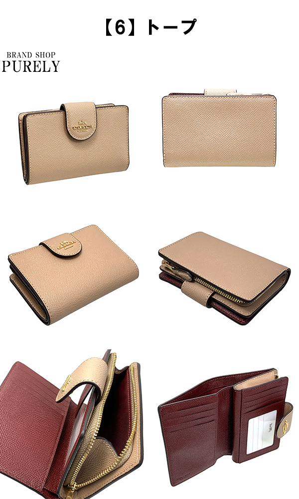 コーチのクロスグレイン レザー ミディアム コーナー ジップ ウォレットのご紹介です。耐久性に優れたクロスグレインレザー素材にコーチのロゴプレート施されたオシャレな折り財布です。使い勝手の良いミディアムサイズで手なじみもよくファスナー式の小銭入れも備わっていて機能性も優れてます。コーチらしい飽きのこないデザインなので、プレゼントにもおススメです。-------------------------コーチ COACH 財布クロスグレイン レザー ミディアム コーナー ジップ ウォレット■サイズ横幅:約13cm高さ:約9cmマチ:約3cm※素材の性質上、多少の誤差はご了承ください■仕様開閉:ホックボタン式外側:ファスナー付小銭入れ×1内側:札入れ×1 ポケット×2 カードポケット×7 クリアポケット×1■素材レザー■カラーIMBLK ブラック(ゴールド金具)IMCHK チョークIMF8Q 1941レッドIMMID ミッドナイトIMQRG マイアミレッドIMTAU トープSVDTV ブラック(シルバー金具)■型番6390