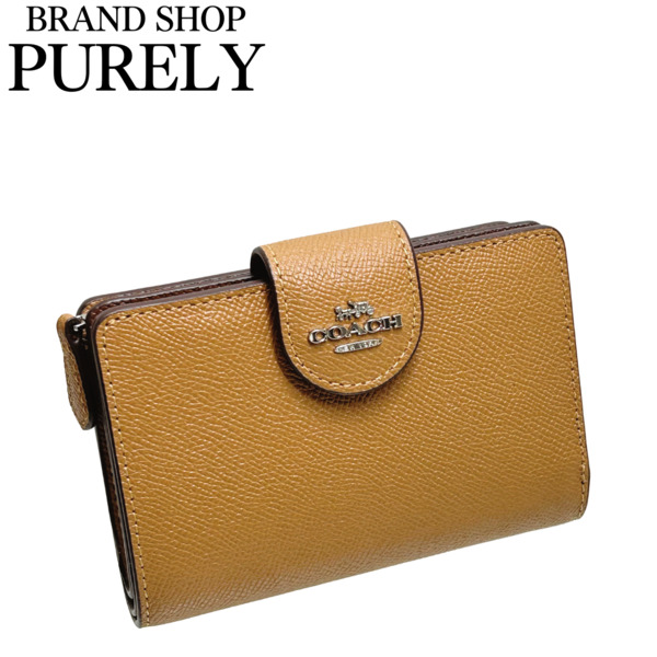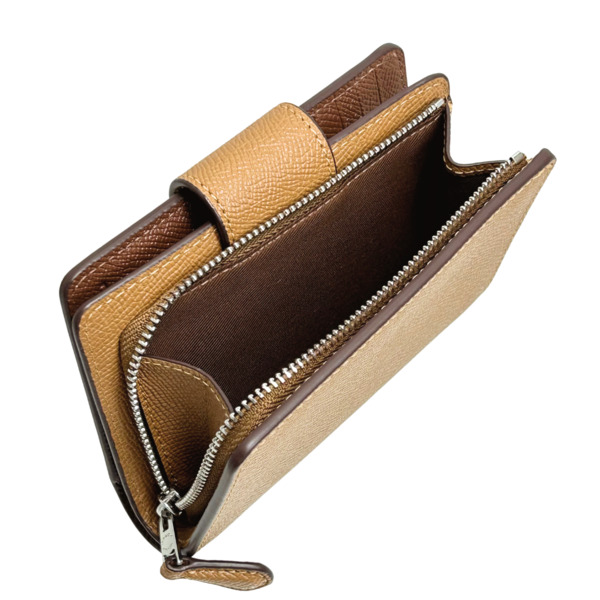 コーチ 財布 レディース COACH 折り財布 クロスグレイン レザー ミディアム コーナー ジップ ウォレット 6390 SV/QD ライトサドル