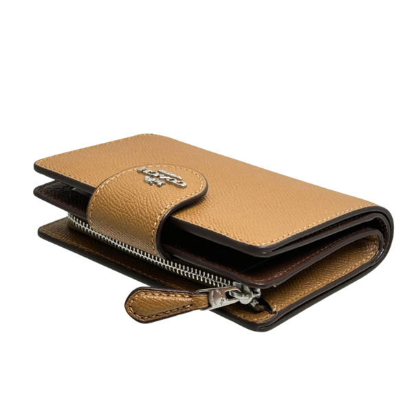 コーチのクロスグレイン レザー ミディアム コーナー ジップ ウォレットのご紹介です。耐久性に優れたクロスグレインレザー素材にコーチのロゴプレート施されたオシャレな折り財布です。使い勝手の良いミディアムサイズで手なじみもよくファスナー式の小銭入れも備わっていて機能性も優れてます。コーチらしい飽きのこないデザインなので、プレゼントにもおススメです。-------------------------コーチ COACH 財布クロスグレイン レザー ミディアム コーナー ジップ ウォレット■サイズ横幅:約13cm高さ:約9cmマチ:約3cm※素材の性質上、多少の誤差はご了承ください■仕様開閉:ホックボタン式外側:ファスナー付小銭入れ×1内側:札入れ×1 ポケット×2 カードポケット×7 クリアポケット×1■素材クロスグレインレザー■カラーSV/QD ライトサドル■型番6390