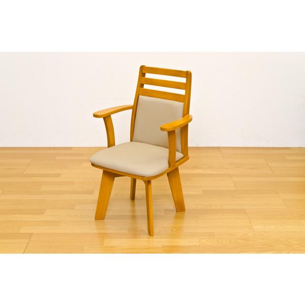 ダイニングチェア(回転椅子/リビングチェア) 1脚 木製 張地:合成皮革/合皮 肘付き BENSON ライトブラウン 送料無料