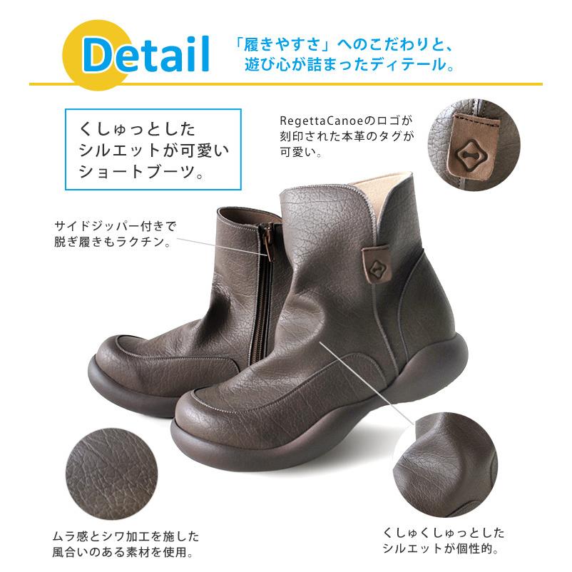 リゲッタカヌー RegettaCanoe CJOS-6422 ショートブーツ サイドジッパー付き カジュアル