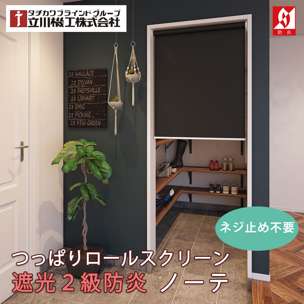 つっぱり ロールスクリーン ノーテ 遮光2級 防炎 幅25〜180cm×高さ30〜200cm 立川機工 簡単取付