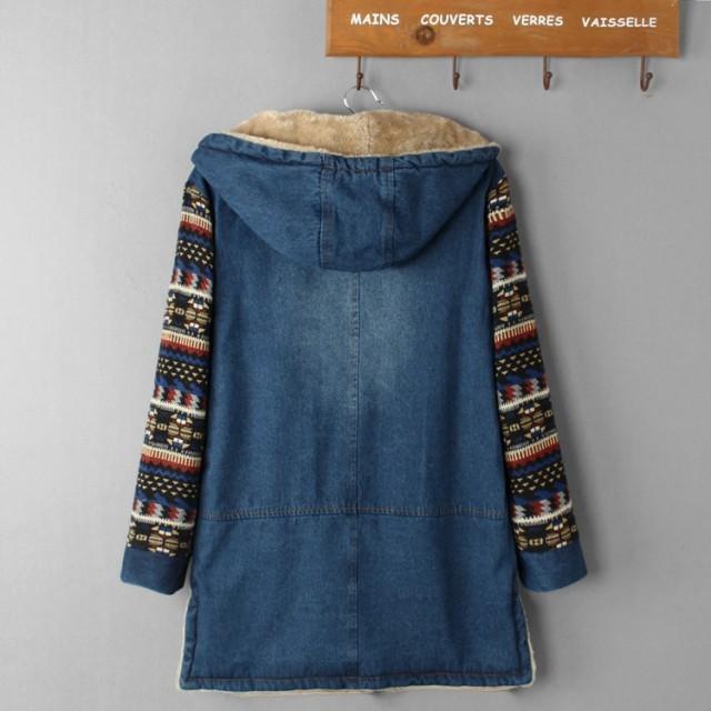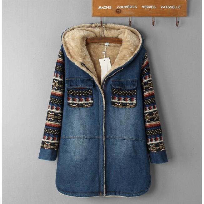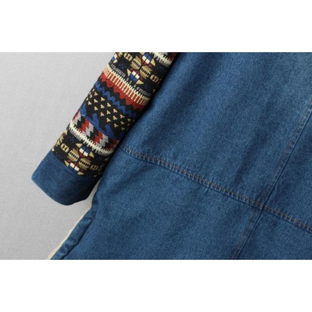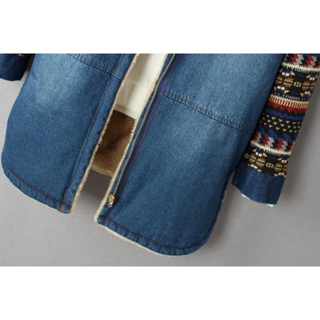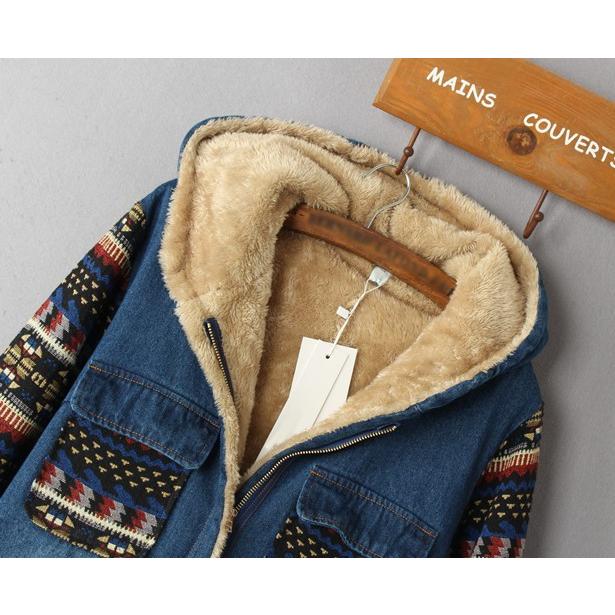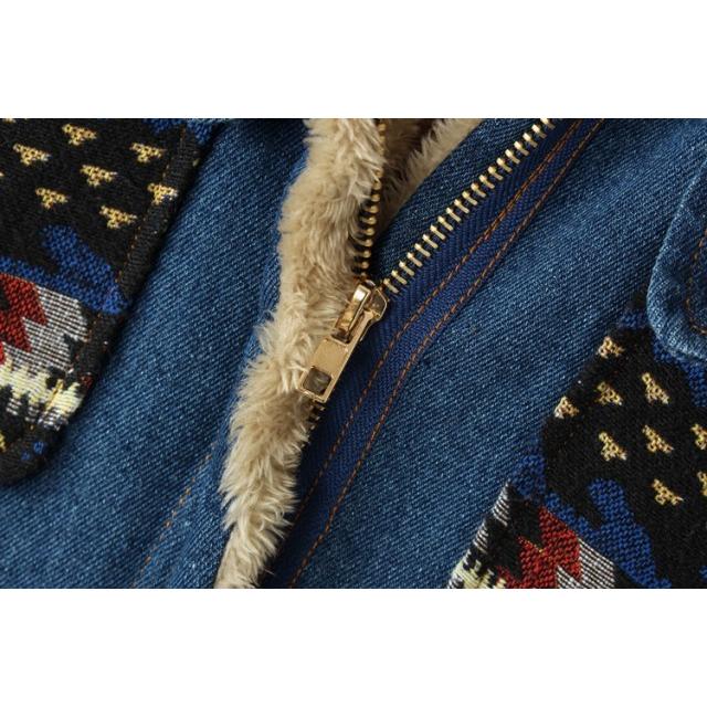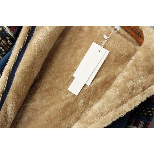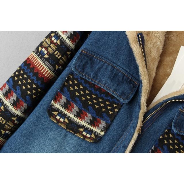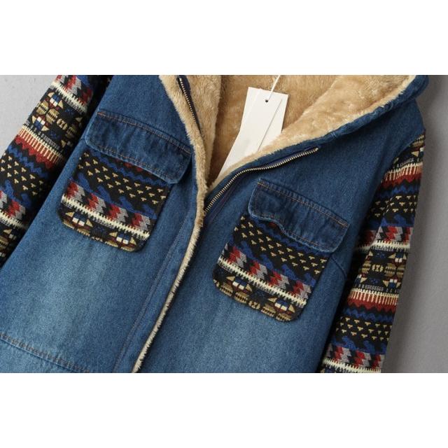 裏ボア アウター デニムコート ボア レディース 秋 冬 デニムジャケット エスニック柄 フード コート カジュアル おしゃれ 大人可愛い 秋冬 韓国 ファッション