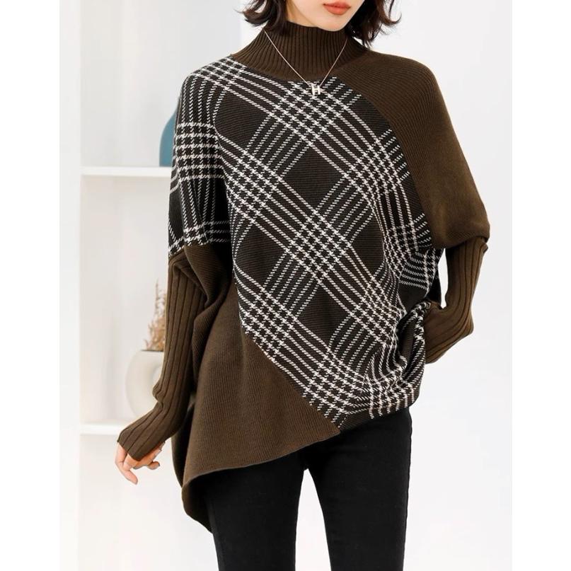 商品番号:AWF0243● 商品名 ● チェック ニット レディース 秋冬 トップス 長袖 ハイネック 切り替えトップス アシンメトリー 体型カバー 大きいサイズ 3L 4L 秋 冬 ゆったり ビッグシルエット オーバーサイズ シンプル エレガント フェミニン 韓国 ファッション ボトルネック ブラック ブラウン グリーン ● 商品説明 ●長めの着丈でスタイリッシュに決まるニットトップス。大きめにデザインされたチェックがシーズンムードを高めてくれるエレガントな一枚。ハイネックなので真冬でも暖かく、アウターとも好相性です◎。ゆるめのシルエットとおしりが隠れる着丈なので、すっきりボトムがおすすめ。プリーツなど落ち感のあるスカートにもマッチします。カラーはブラック、ブラウン、グリーンの3色展開。サイズはM〜3XLまであり、大きいサイズからもお選びいただけます。 サイズやカラーなどは商品説明をご覧ください▼▼ 「商品情報をもっと見る」をタップ ▼▼"}