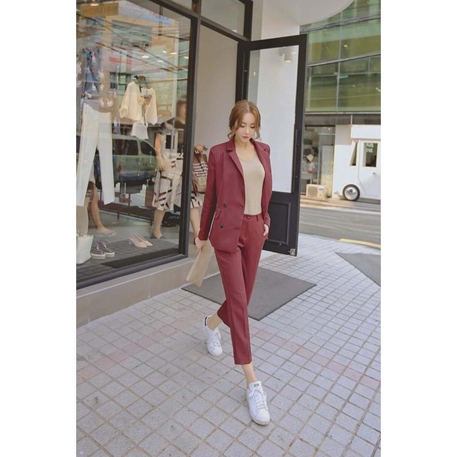 お仕事にもカジュアルにも使えるパンツスーツ。