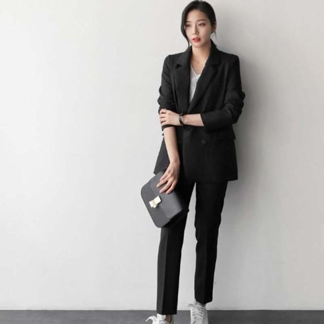 セットアップ パンツスーツ フォーマル 七分丈 ストライプ 大きいサイズ レディース パンツ ジャケット ベーシック ゆったり 通勤 3L