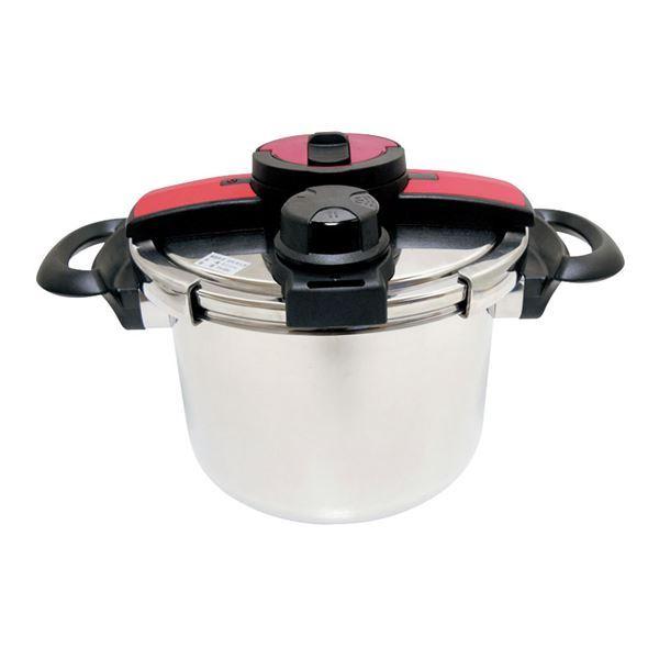 【商品名】 NEWボルドー 両手圧力鍋6L 23002 【ジャンル・特徴】 スライドロックつまみを動かすだけで簡単オープン、つまみを戻すと閉まる簡単操作。蓋は360度どの方向にセットしてもきちんと閉まるので、面倒な操作やコツはいりません。蒸す・炊く・煮る・茹でるといった様々な料理に使えます。 2段階圧力調整装置付きで、IH(100V/200V)対応。 25品の本格レシピブック付き。"} ■サイズ・色違い・関連商品