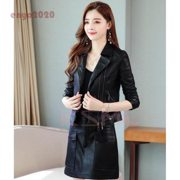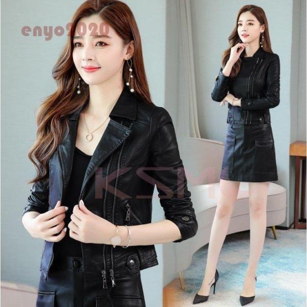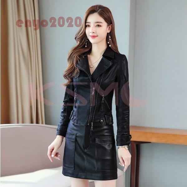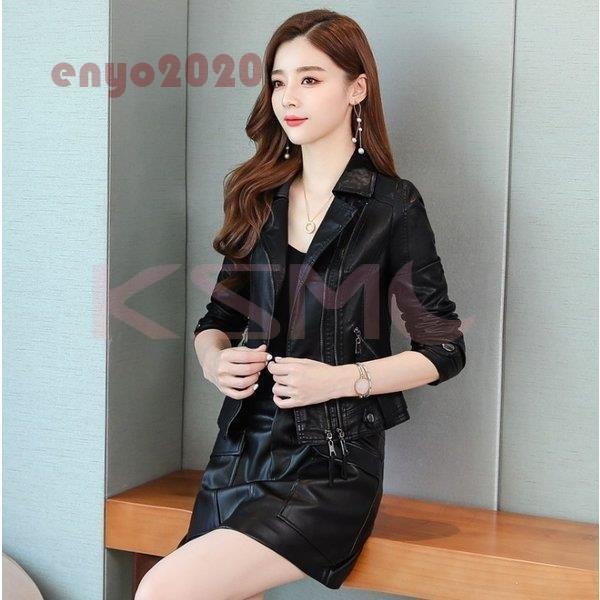 レディース ジャケット PU革ジャン ライダースジャケット ジャンパー(小さめ、oneサイズアップ勧め) バイク レザージャケット