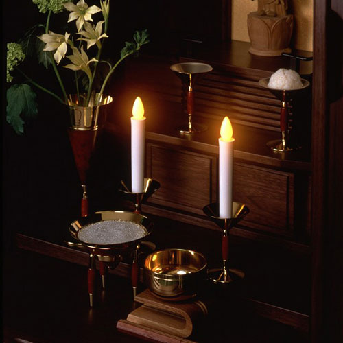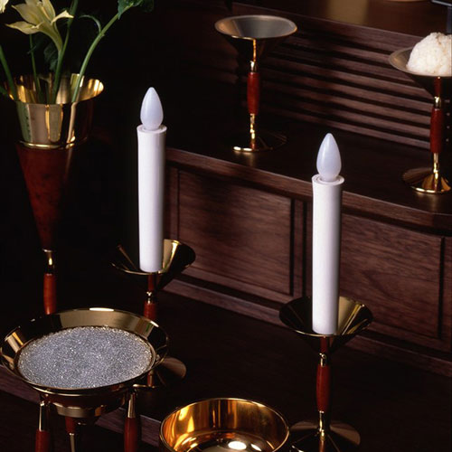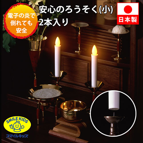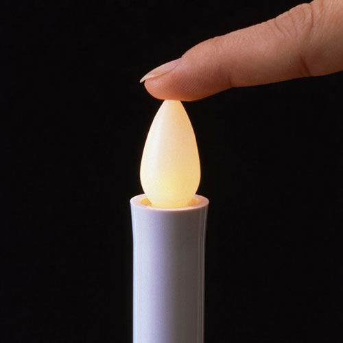 | LEDの光で明るく安心 ●特徴 ・電池式だから倒れても安心。 ・本体の底に穴付のシリコンゴムが付いていて、お手持ちの燭台に差し込んでご使用できます。 ・明るいLEDを使用。 ・LEDは明るさ長持ち。マンガン電池(黒)使用で約30時間連続点灯(1日15分で約5ヶ月)、アルカリ電池使用で約60時間連続点灯(1日15分で約7ヶ月)が可能です。 ●商品説明 ・光源はLEDを使用し、炎の部分を押すだけで、点灯、消灯ができるので安心です。 ・電池は、単5電池2本使用。 |