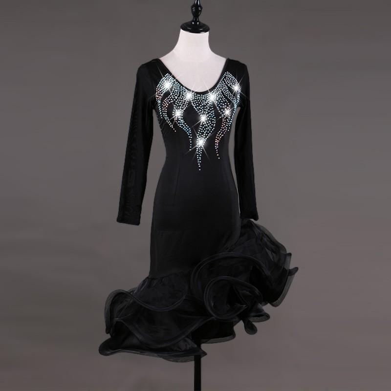 社交ダンス 練習着 ラテンドレス ワンピース 大きい裾 タンゴ服 舞台服 インターナショナルダンス ダンスウエア ワンピース