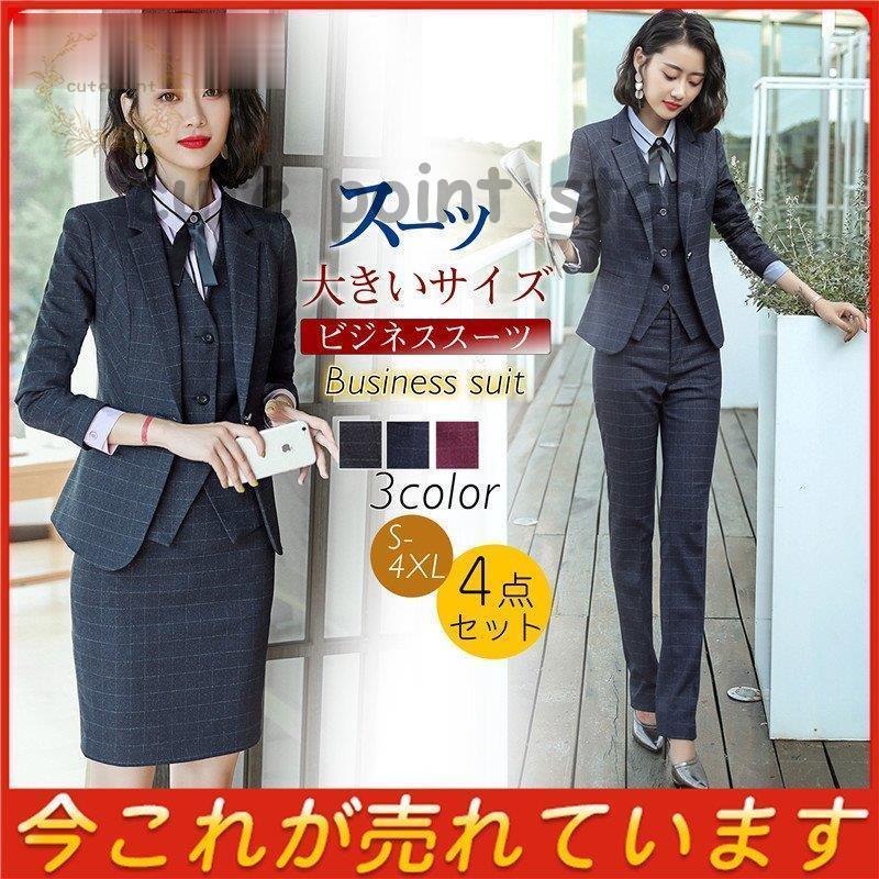 スーツ レディース ビジネススーツ 4点セット リクルートスーツ パンツドレス オフィス 通勤 就活 面接 大きいサイズ 40代 30代 20代