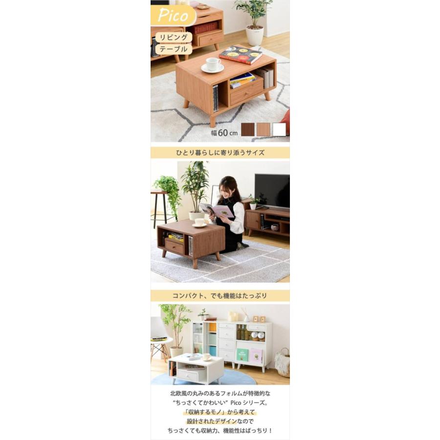 リビングテーブル 収納 幅60 奥行42.5 高さ35 Pico おしゃれ 引き出し付き かわいい 韓国風 コンパクト コーヒーテーブル 木製 収納付き リモコン収納