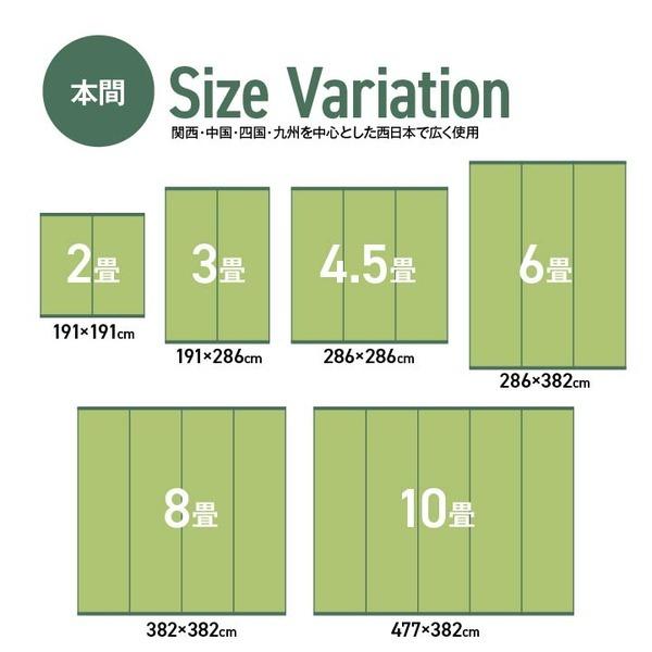 【商品名】 い草風 ラグマット/絨毯 【グリーン 本間4.5畳 約286×286cm】 洗える 日本製 防ダニ PPカーペット 〔リビング〕 【ジャンル・特徴】 バルカン PPカーペット ラグマット ペット レジャーシート アウドドア敷物 敷き物 フロアマット フローリング 床 リビング ダイニング ベッドルーム 寝室 子供部屋 書斎 応接 居間 洋室 和室 学校 施設 幼稚園 保育園 日本 国産 ウォッシャブル らぐまっと じゅうたん らぐかーぺっと しきもの ふろあまっと"} ■サイズ・色違い・関連商品