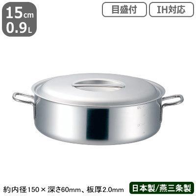 ・『プロデンジ』超厚底・電磁対応鍋シリーズ。 NSSC190ステンレス製。プロのための電磁調理器用鍋です。・NSSC190製(19Cr-2Mo-Ti-Nb-ULC-LN) 厨房業界最高峰の耐久性を誇るモリブデン入りクロムステンレスでSUS444規格 (SUS316規格と同等の耐久性)の中で最高品質にランクします。 加熱による変形が起こりにくく、業務用電磁調理器に最適です。・超厚底構造 底板厚2mm〜3mm:ハイパワー業務用電磁 調理器200V-5KW以上にも対応。保温.・保湿性・熱効率に優れ、しかも焦げ付きにくい構造。 最大3mmの超厚底とし、業務用200V-5Kw以上のハイパワーの電磁調理器にも対応し業務用のハードで長時間の酷使にも耐えられる構造。 更に保温・保湿性に優れ、焦げ付きにくくなっています。・底中心部を押し上げた電磁調理器の長時間の加熱でも変形に強い構造。 底の中心部を約1mm程度上部に押し上げた構造。超厚底構造に加え、電磁調理器の長時間の加熱で起こりやすい底中心部の膨らみを防ぐ構造となっております。・NSSC190ステンレス単層構造だから、丈夫で電磁調理器には最適です。