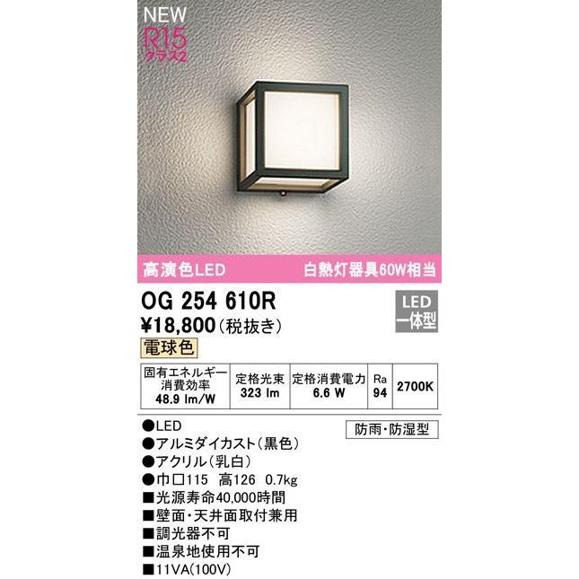 オーデリック R15クラス2 高演色LEDエクステリアポーチライト・軒下灯[白熱灯器具60W相当][電球色][ブラック][防雨・防湿型]OG254610R