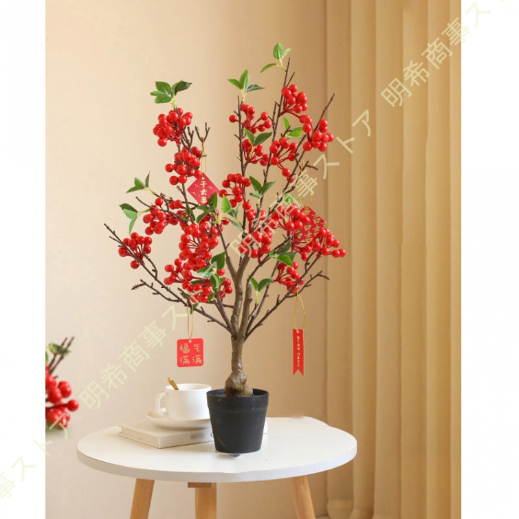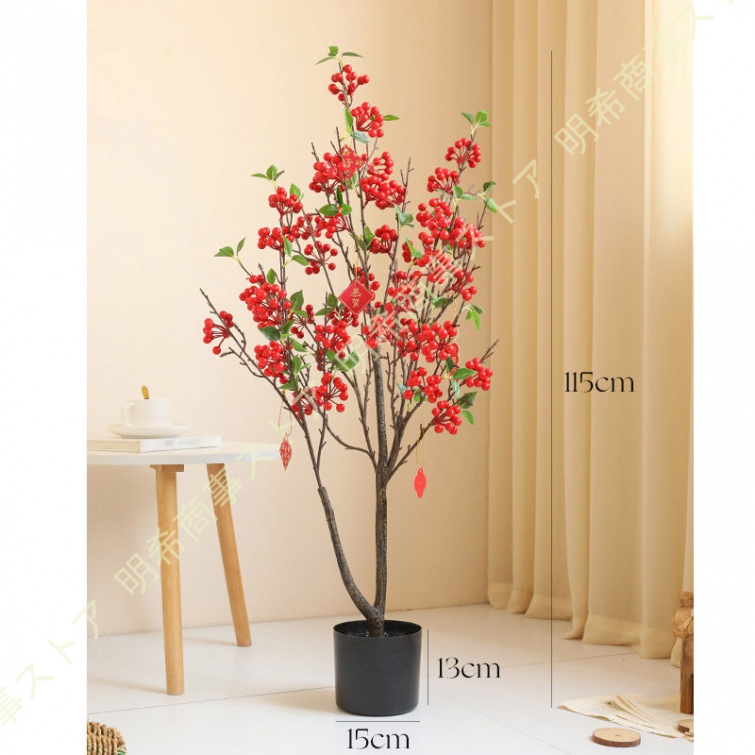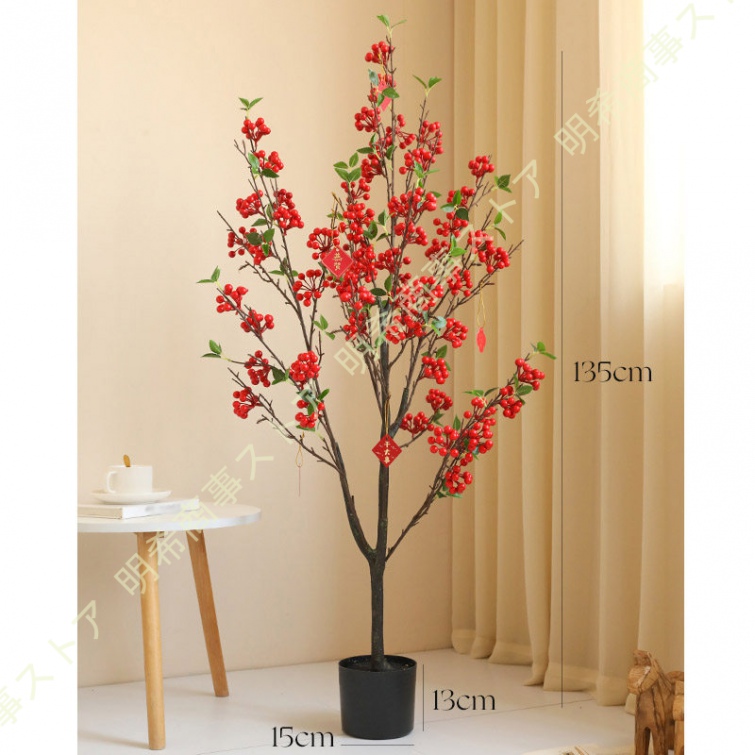 赤果実付き 人工観葉植物 大型 人工観葉樹 人工植物 フェイクグリーン シミュレーションツリー 玄関 屋内 屋外 ホーム オフィス ガーデン 家の玄関