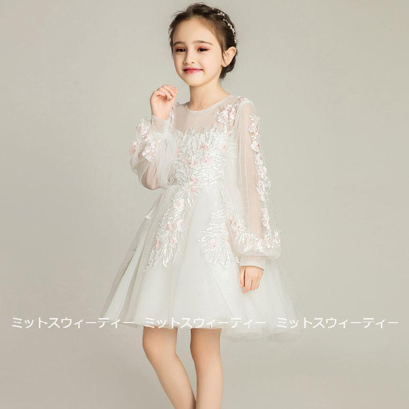 キッズドレス 女の子 子供 ドレス ピアノ発表会 ミニドレス 長袖 セレモニー ワンピース プレゼント 結婚式 子ども フラワーガール ピアノ コンクール 子供服