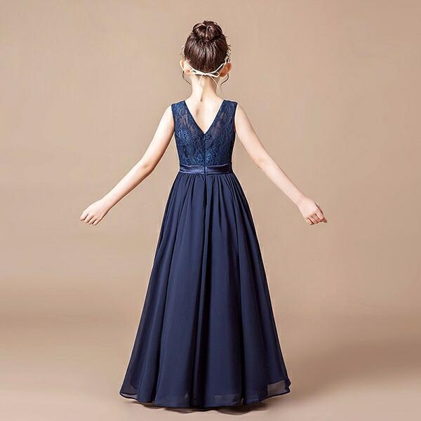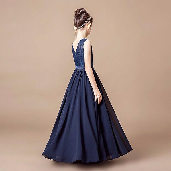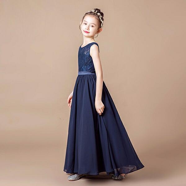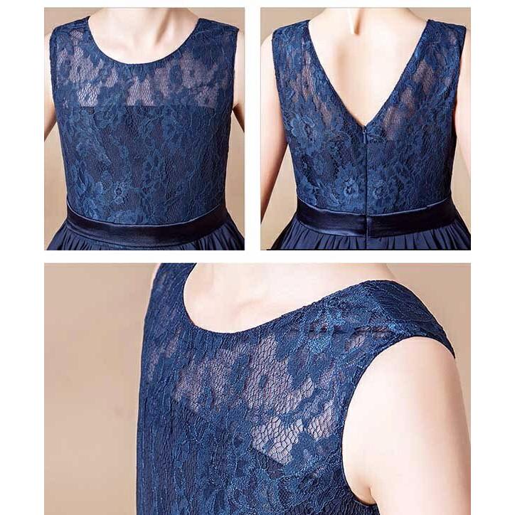 【Aランク】 160 ピアノ 発表会 ドレス 七五三 ネイビー キッズドレス レース ロング ファスナー 袖なし フォーマル コンクール 披露宴 お姫様 上品 結婚式