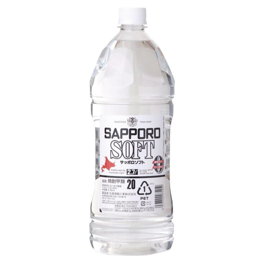 北海道 ケース販売 サッポロ酒精 サッポロソフト20% 2.7Lペット 6本/1箱 甲類焼酎 連続蒸留 札幌酒精
