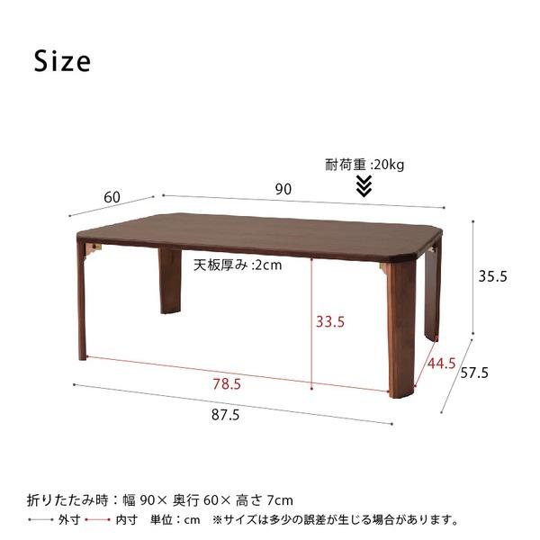 幅90cm ドマーニテーブル(ブラウン) 机 木製 折り畳み ローテーブル 折れ脚 センターテーブル 北欧 モダン ウォールナット アンティーク おしゃれ 突板 完成...