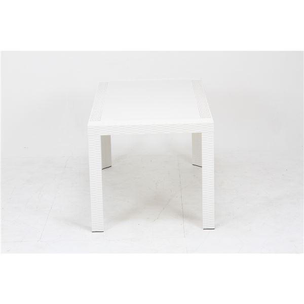【商品名】 ガーデンテーブル 約幅140cm ホワイト 屋外用 パラソル穴付き 軽量 持ち運び便利 組立品 ベランダ バルコニー 【ジャンル・特徴】 ガーデンテーブル サイドテーブル ミニテーブル カフェテーブル コーヒーテーブル コンパクトテーブル ガーデニング用品 園芸用品 屋外 室外 庭 ベランダ バルコニー テラス ウッドデッキ プレゼント 贈り物 ギフト 引っ越し 引越し 引越 がーでんてーぶる [ 49926 ]"} ■サイズ・色違い・関連商品
