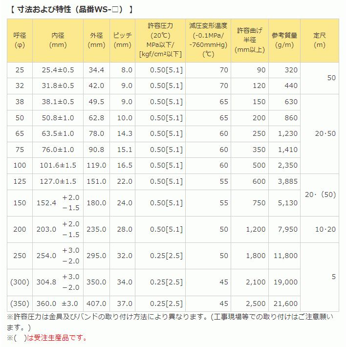 ■特徴 ●補強コード入りなので耐圧性に優れています。 ●軽量で柔軟性に優れています ●デリバリー、サクション用に適しています■用途 ●一般用デリバリー・サクション用 ●水中ポンプの立上り、急傾斜、ホースの吊り下げ状態などの用途に ●ダンバー車のサクション用に■仕様 ●呼称:32 ●内径(mm):31.8±0.5 ●外径(mm):42.0 ●ピッチ(mm):9.0 ●参考質量(g/m):440 ●許容圧力(MPa以下)[kgf/cm2]:0.50[5.1] ●減圧変形温度(-0.098MPa時):70 ●許容曲げ半径(mm):120"}