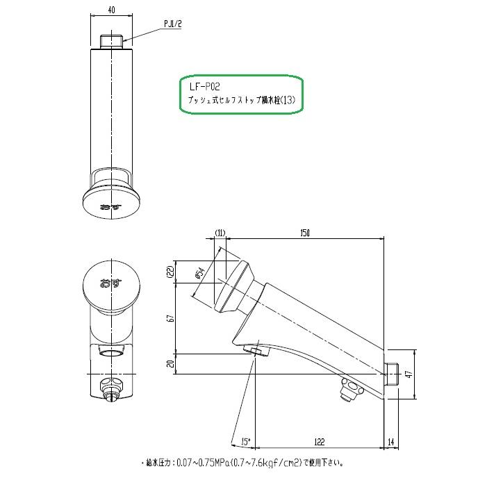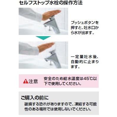 INAX製 洗面・手洗い用水栓金具です。プッシュボタンを1回押せば、一定量吐水後、自動的に止水します。水のムダ使いがないため、無理なく節水できると同時に衛生的で、パブリックな場所におすすめです。一般地/寒冷地:一般地配管サイズ:13mm吐水タイプ:泡沫吐水口長さ:固定122mm(壁から)吐水口位置:壁面より122mm