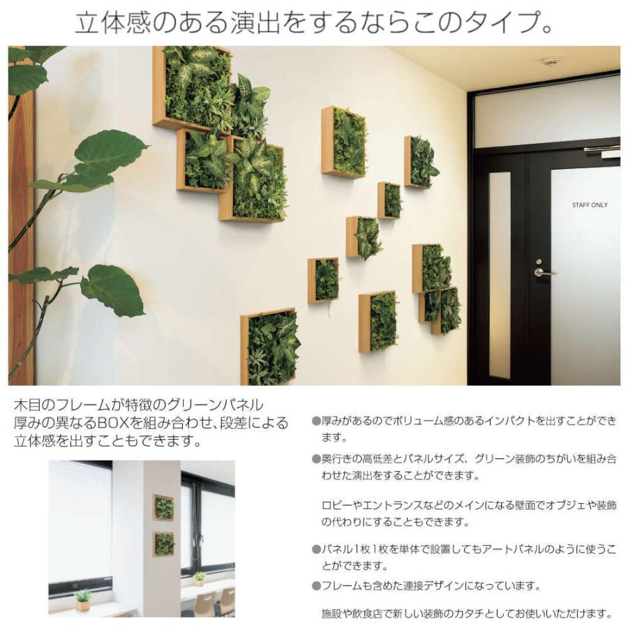 【品番】GR1083【商品名】連接グリーン【サイズ】300×220×300【カラー(仕上げ)】フレーム:12mmMDF木目シート貼り パネル(91)【材質】面板:9mmMDFシート貼り・木桟・12mmMDF【添付品】直付け用ビス【概要】BOX型のグリーンパネルを組み合わせて壁面を演出するスタイルです。奥行き感の違いと木目ラインで、インパクトあるおしゃれな空間を作れます。"} 品番 GR1083 商品名 連接グリーン サイズ 300×220×300 カラー(仕上げ) フレーム:12mmMDF木目シート貼り パネル(91) 材質 面板:9mmMDFシート貼り・木桟・12mmMDF 添付品 直付け用ビス 概要 BOX型のグリーンパネルを組み合わせて壁面を演出するスタイルです。