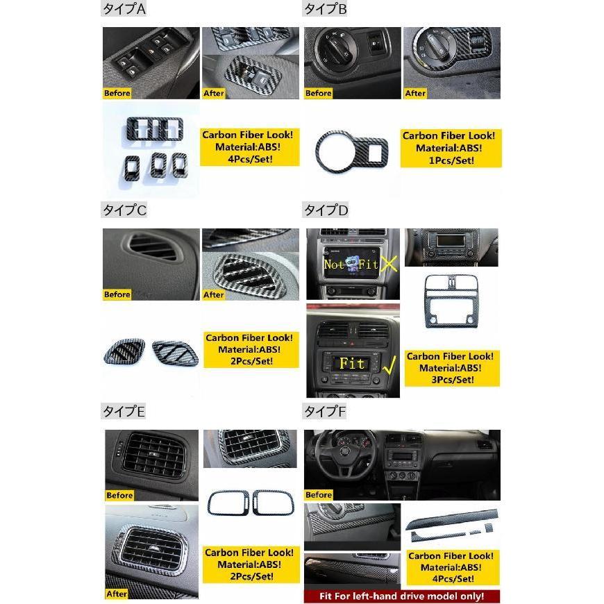 カーボンファイバー アクセサリー 適用: VW フォルクスワーゲン/VOLKSWAGEN ポロ 2014-2018 ウインドウ リフト ヘッド ライト ボタン ダッシュボード エア AC 吹き出し口 カバー トリム