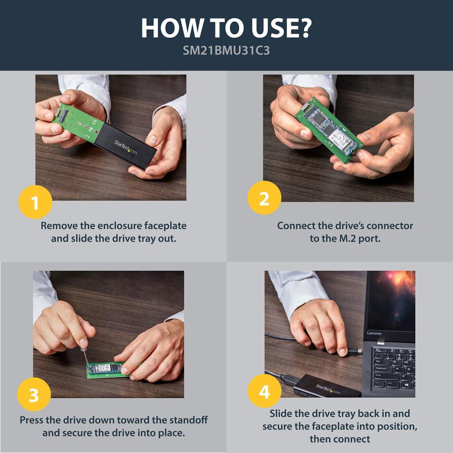 全国送料無料!海外倉庫からの出荷となりますため、お届けまで5-12営業日ほどお時間がかかります。通関検査の開封による外箱損傷が稀にありますが、国内到着後にも検品しておりますので、品質に関してはご安心ください。【お急ぎのお客様、複数購入をご希望のお客様】問い合わせページからご連絡ください。迅速に確認いたします。 ●StarTech.com USB-C接続SATA M.2 SSDケース USB 3.1(10Gbps) USB-C搭載MacBook/Chrombook Pixel対応 SM21BMU31C3AspectRatio:unknown_aspect_ratio