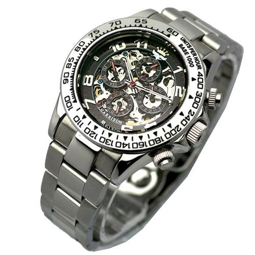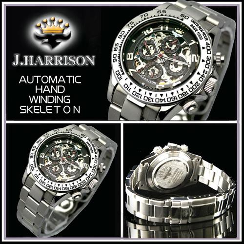 ☆J.HARRISON 機械式多機能両面スケルトン時計 JH-003RB