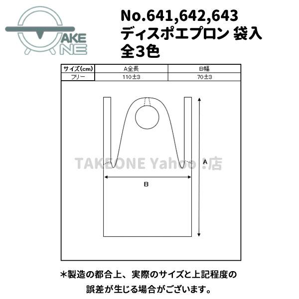 ディスポエプロン 袋入数量:1ケース(20袋)/1袋100枚入■カラー:641:ホワイト 642:ブルー 643:ピンク■サイズ:フリーサイズ 70cm×110cm■材質:ポリエチレン■エンボス:型押しエンボス加工■厚み:10ミクロン【特徴】■衛生的な使い捨てタイプです■ポリエチレン製で、水分や油分を通しにくい。■脱着用のミシン目あり、脱着が簡単です。■食品衛生法適合品です【用途】■食品加工や調理、医療、介護作業等家庭用から業務用まで、幅広くご使用いただけます。■ポリエチレン製 使い捨て エプロン ホワイト ブルー ピンク