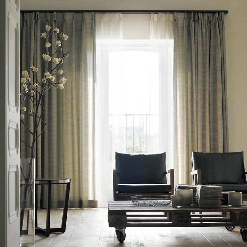 1.5倍ヒダは、既製品のカーテンの縫製によく用いられる仕様です。ヒダをとるための生地が少ないので、ウェーブの出方も控えめになります。