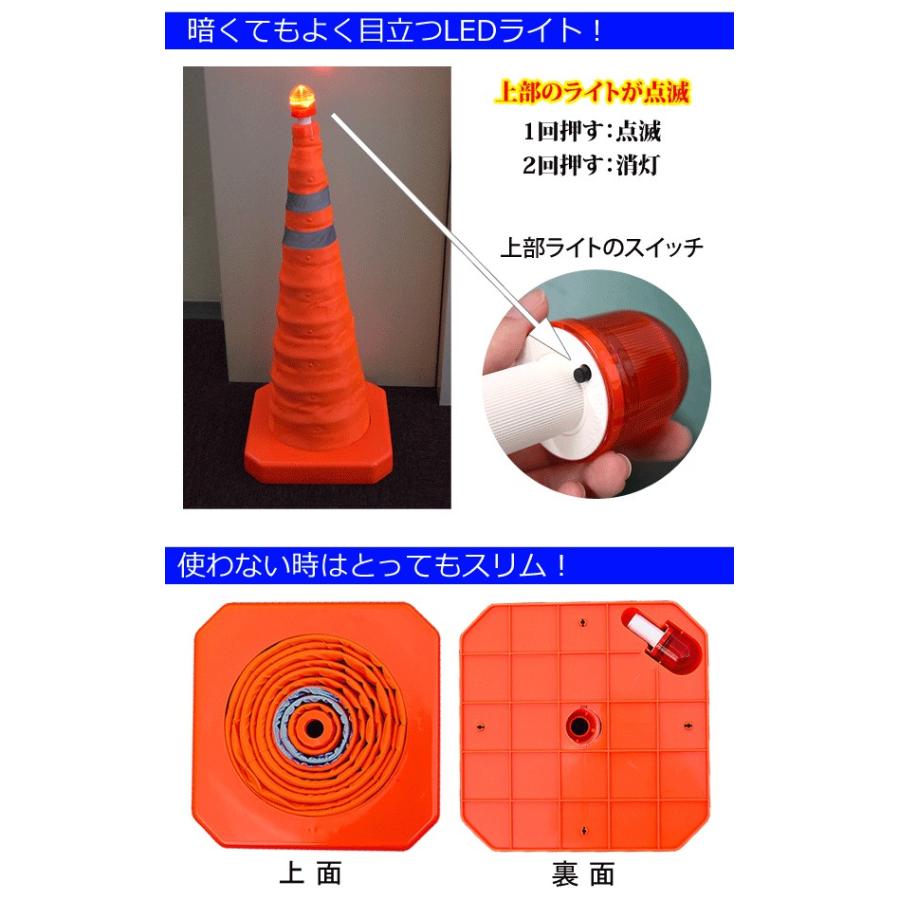 | 折りたためる三角コーンなので車のトランクにも置きやすく、収納場所をとりません! 緊急時の目印、駐車禁止や迷惑駐車対策、工事現場などに。 ライトが点灯するので夜でも目立ちます! | |||||||||||||||