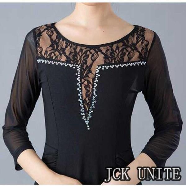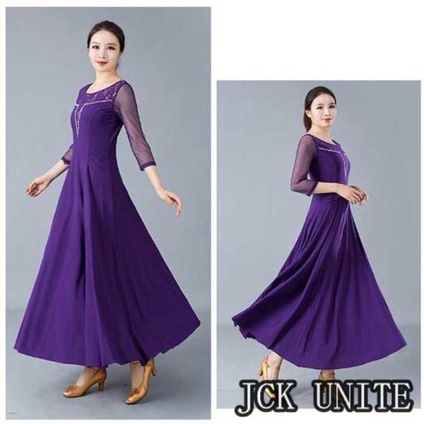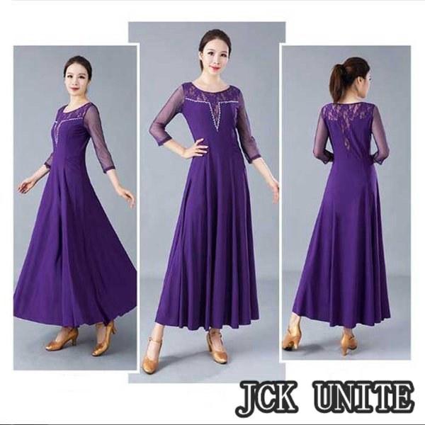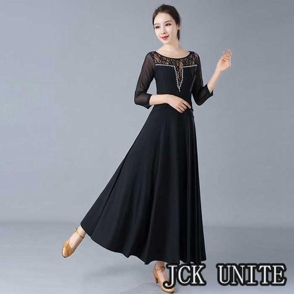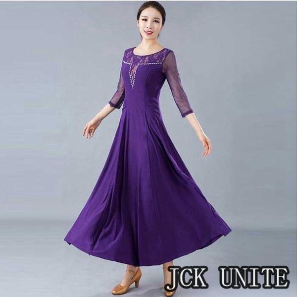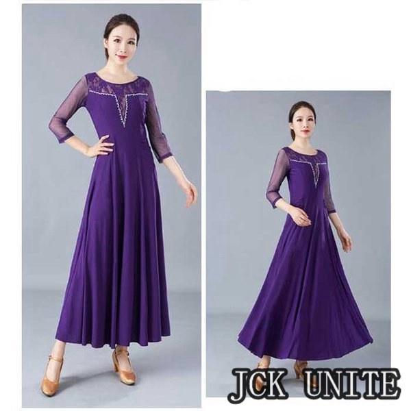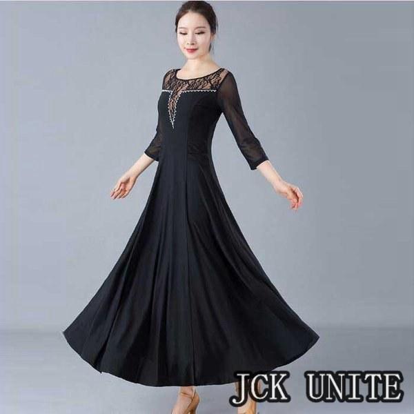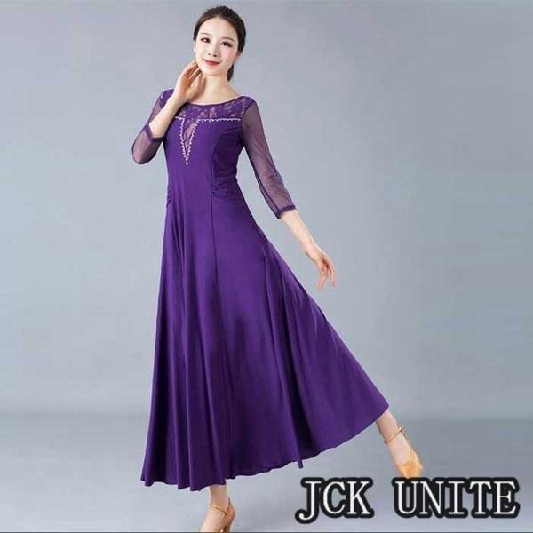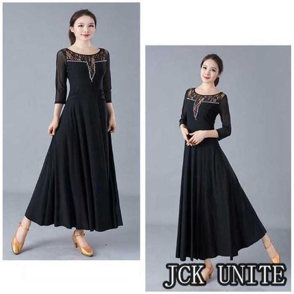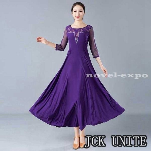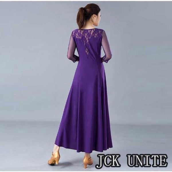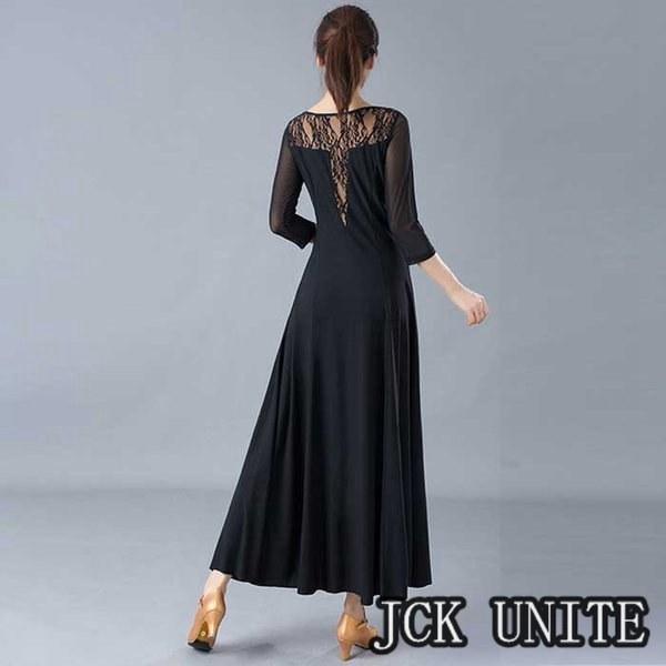 社交ダンス衣装 ラテン衣装 モダンドレス ラテンドレス スタンダードドレス 七分袖 ロングワンピース ワルツダンス レース 花柄おしゃれ ダンスウェア