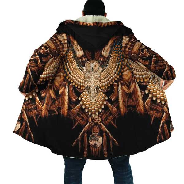 Hx-エスニック部族のトーテムを備えたフード付きスウェットシャツ 冬の衣類 防風 フード付きフリース ケープ付き