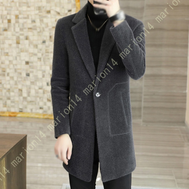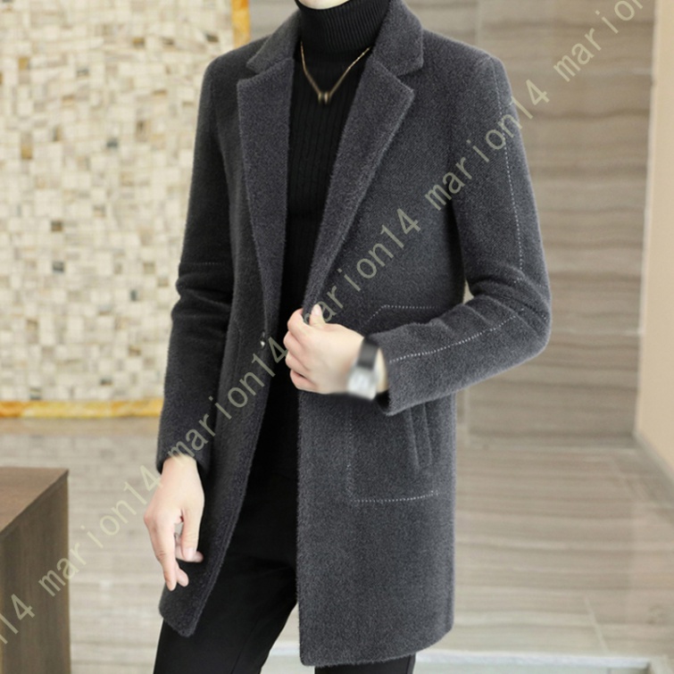 チェスターコート トレンチコート メンズ ロングコート ジャケット アウター メルトン 無地 厚手 シングル 細身 防風 防寒 暖かい 紳士服 ジャケット 細身