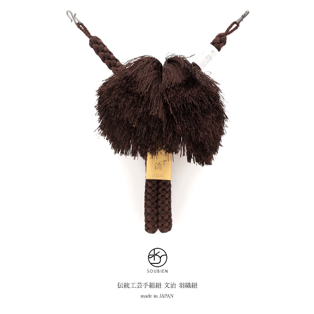 羽織紐 メンズ ブランド 翠嵐工房 文治 焦茶色 ブラウン 手組紐 手ぐみひも 丸組み 正絹 S環付属 和装小物 男性用 送料無料