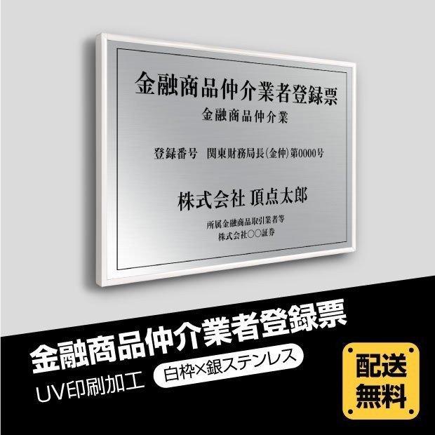 金融商品仲介業者登録票 選べる4書体 5枠 uv印刷 ステンレス仕樣 撥水加工 法定看板 金看板 短納期 w52×h37cm(fpb-sil-white)